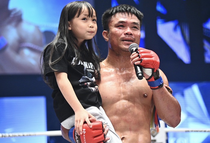 ゴンナパーは愛娘をリングに招き入れると抱き上げ、「今日はとてもうれしいです。今日はタイから娘と奥さんも来てくれて感動しています。これからも一生懸命練習して頑張ります。いつもタイのウィラサクレックムエタイジムで練習しています。皆さん、タイへ来た時は僕に会いに来てください。世界中から応援してくれるファンの皆さん、日本の皆さん、今日はありがとうございました。これからもよろしくお願いします」と語った。