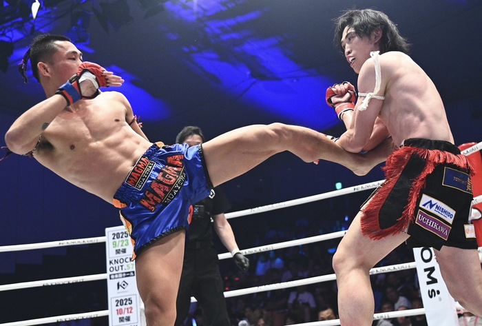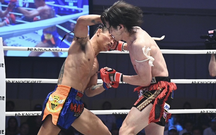 3R、古村の右カーフを空振りさせて左ミドルを蹴るプンルアン。パンチを空振りしても左ミドルを当てる。しかし、右ローを蹴るプンルアンに古村が圧をかけていき、左フックを振り抜いた。オープンフィンガーグローブならではのガードをすり抜けたこの一発が見事に決まり、豪快に倒れるプンルアン。古村のKO勝ちとなった。