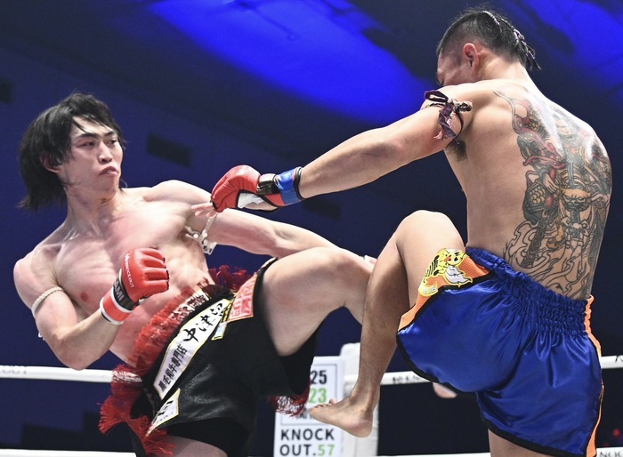 2R、プンルアンは左ボディ、古村がバランスを崩して倒れたところを蹴ろうとしてしまい注意を受ける。古村の前蹴りにプンルアンは左ミドル、パンチを見せておいての左ミドルもヒットさせる。古村はワンツーで反撃もすぐにプンルアンは左ミドル。