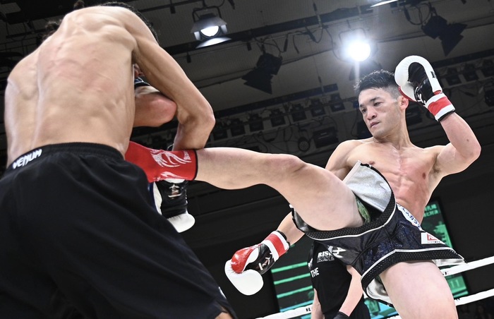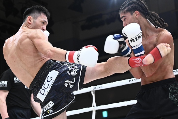 キャルービーも右ボディ。大﨑が前蹴りから強烈な右ボディを叩き込むと、キャルービーは大きく下がる。大﨑が右ミドル、左ボディを打ち、右ハイを蹴ってから右ミドルを命中させる。