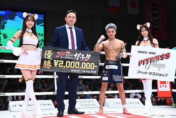 数島は「優勝おめでとうございます。実力あって試合見させてもらったし、末國選手をKOしているので強いなって思って。でもRISEって今回のトーナメント、棚澤選手を優勝させようと思っていたでしょう。僕はそういうところが嫌いなんですよ。選手はみんな命削ってやってるのに、贔屓するのはよくないと思います。それを黙らせるには、僕が棚澤選手に圧倒的に勝つことだと思う。TEPPENにもやられているのでリベンジしようと思います」と毒舌アピール。