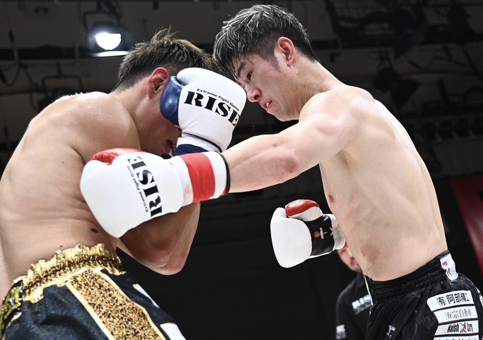 2R、稲井が前へ出てくるところに左のテンカオをタイミングよく合わせる和田。それでも稲井は前へ出て右ストレート、左ボディ。パンチの振りが大きい稲井に和田はカウンターを狙う。稲井も右の三日月と左ボディ、左右フックで前へ出るが和田のパンチも被弾。和田が左フックを強打も稲井は前進をやめない。しかし、振りが大きく和田にかわされる。