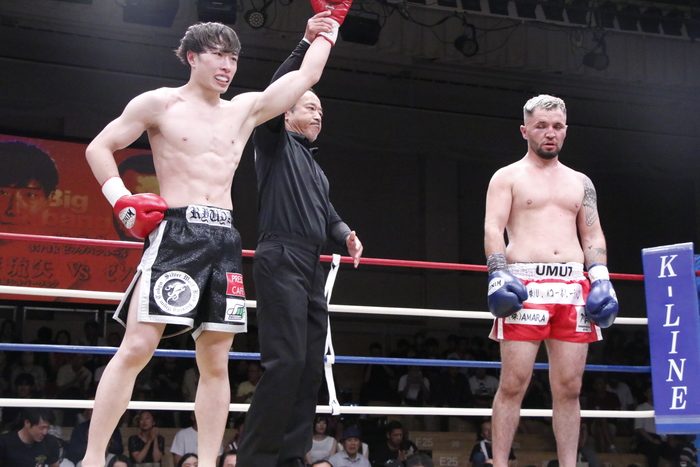 3R、逆転を狙うウムトは左右フックと左ボディ、藤平はジャブを突いてミドルとハイを蹴る。両者かなり消耗しているが打ち合いを続け、藤平もジャブと右ストレートで譲らず判定勝ち。