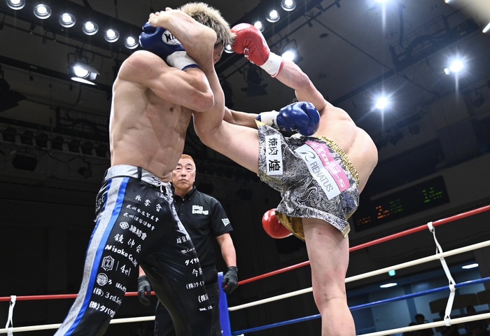 しかし、ポッシブルKの右ハイで大きくグラつき、ポッシブルKの連打に身体が左右に揺れる。それでも倒れない昇也は頭をグラつかせながらも打ち返す。一方的に打たれて棒立ちになる昇也はそれでも耐えるが、レフェリーはスタンディングダウンを宣告。大歓声の中、試合終了のゴング。