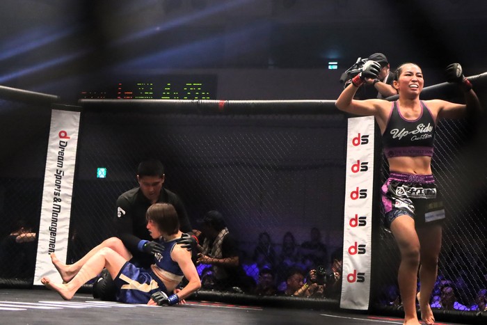 試合後、徳本は「たくさんの応援に来てくれてめっちゃ頑張りました。念願のKOができてめっちゃ嬉しいです。私はアトム級のチャンピンになりたいので、あっ“なります”ので応援してくれたら嬉しいです」と語った。