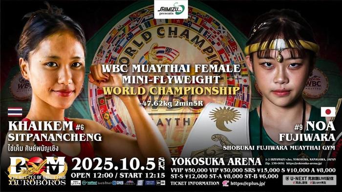 藤原の次戦は、10月5日(日)神奈川・横須賀アリーナで開催されるBOMのビッグマッチ『Shimizu presents BOM OUROBOROS 2025』にて、WBCムエタイ世界ミニフライ級(-47.62kg)王座決定戦で同級6位のカイケム・シットパナンチューン (タイ)と対戦が決まっている。