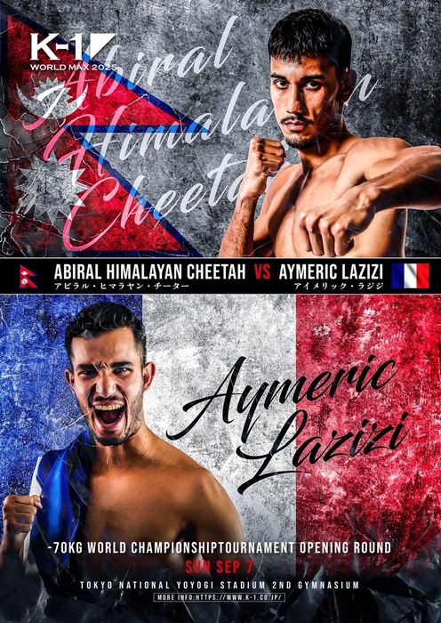 決定した8カードの見所を選手データとともに追っていく第5回目は、アビラル・ヒマラヤン・チーター(ネパール/志村道場)vs.アイメリック・ラジジ(フランス/MARSEILLE BOXE PIEDS POINGS)のネパール&日本とマルセイユの巨塔の対決だ。