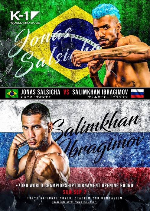 身長191cmのサルシチャは、今年6月にブラジル・クリチバで開催された『K-1 WORLD MAX 2025 -70kg 南米ラウンド』に出場し優勝をはたした。高身長ながらバックスピンキックなど多彩な蹴り技を放つなど、テクニシャンでもある。元WGP Kickboxingスーパーミドル級(-78.1kg)王者で、“ブラジルの巨神”と恐れられている。