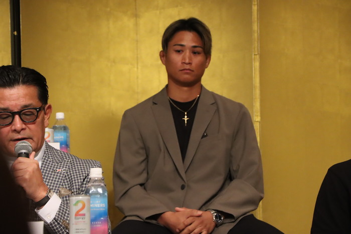 「前回6月の北海道大会以来の試合にはなりますが、自分はバンタム級で日本人最強を目指してやってるんで、しっかり中島選手の壁をしっかり超えて、その先に行きたいと思ってます。あとはハンバーグとかものまねとか、いろいろありましたけど、中島選手が本当に思ってることとか、やってきたもの、全部ぶつけてきてほしいなと思っているし、今タイに練習で行かれてるんですかね? タイでやってきてると思うので、そこで120%しっかり仕上げて、全部ぶつけに来てほしいなと思っています。それを超えて、自分がその先に進みます。以上です」