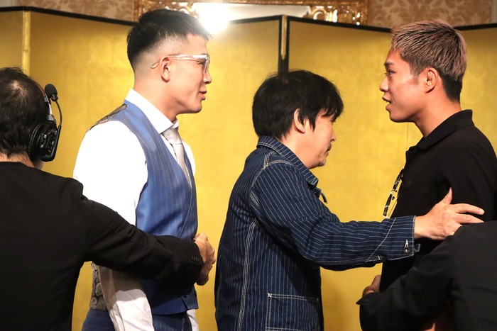 萩原が「どっちでもええねん。お前、そんな細かいこと気にするの? じゃあ、お前が赤コーナーでいいよ」と譲ると、秋元は「OKです。じゃあ、僕が赤コーナーで」となぜか嬉しそう。萩原は「どっちでもいいよ、そんなこと」と興味ないとばかりにマイクを置いた。