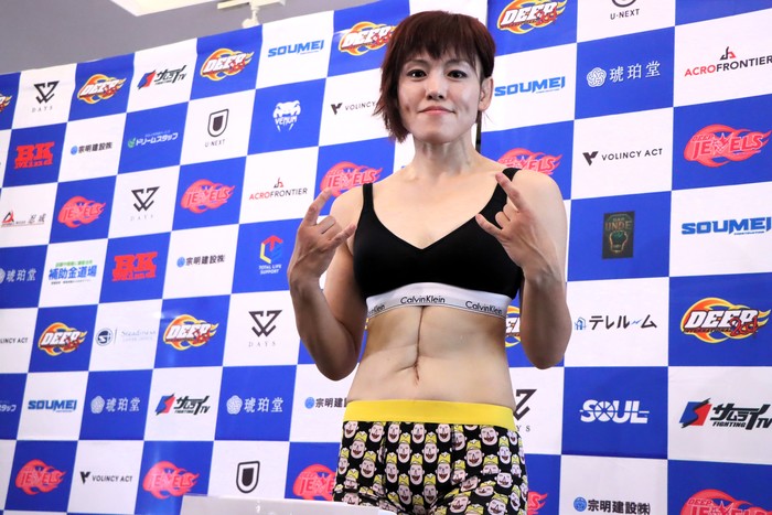 この2カ月間でどこまで自分がその格闘技に向かって自分を作り上げていけたのか。そして、それがどう明日出て行くのかっていうことを、すごく楽しみにしています。DEEP JEWELS 50回の歴史と、女子格闘技の技術の進歩──明日、このケイト・ロータス選手との試合で、お客さんが“来てよかった”と。“女子格はすごい、やっぱり女子格一番だね”と思われる試合を必ずして、皆さんを喜ばせたいと思います。どうぞよろしくお願いします」