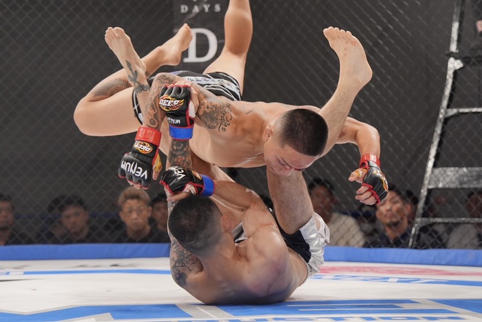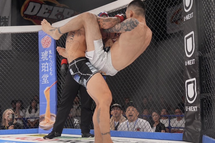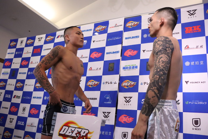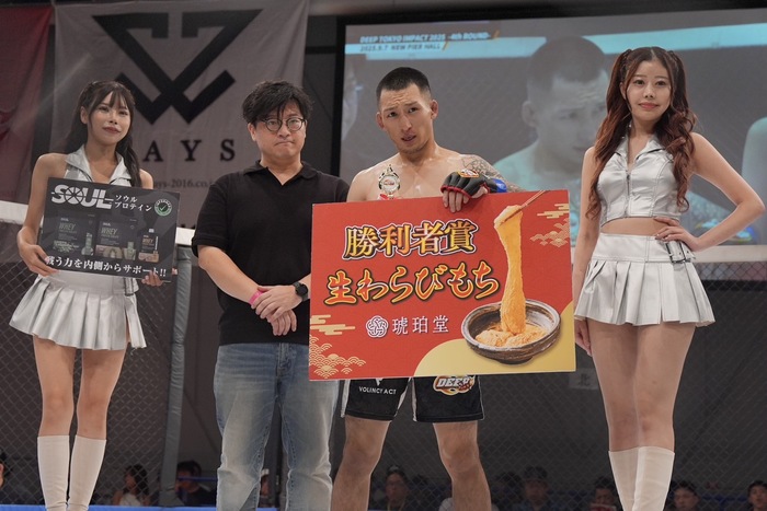 RIZIN甲子園で優勝した横内三旺(Battle-Box)がプロ2戦目。DEEPでは23年11月にアマチュアSPルールフェザー級3分2Rで鈴木大晟 に1R KO負けして以来の試合。24年12月にRIZIN甲子園決勝で斉藤健心に一本勝ちした横内は、25年3月にRIIZN香川大会で前田吉朗に3R リアネイキドチョークで一本負け。再起戦となる。