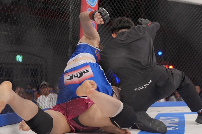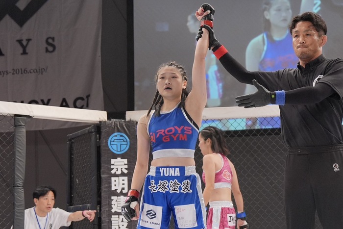 Y&K ACADEMY代表代読「今回記念すべき大会に出場させていただき、誠にありがとうございます。今回の大会に向けて、私は流派の緑帯に昇格してこの試合に臨むことになります。そして今、タイで武者修行中のSAINT選手から応援のコメントが来ていたので(『頑張れー』の動画を見せて)必ず彼のメッセージに応えられるように頑張っていきたいと思います。皆さんよろしくお願いいたします」