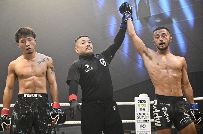 3R、前田はダブルレッグからリフトアップして福田を落とそうとしたが、福田が足を着いてテイクダウンは防ぐ。ワンツーの福田に前田が右ストレートをヒット、ボディロックからテイクダウンし、サッカーキックからパウンド。立ち上がる福田に前田は組み付いてヒザ。福田はワンツーの連打で右ストレートをヒットさせた。