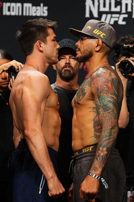 ブラジルのフェヘイラは40歳。UFC10勝6敗(5KO、2一本勝ち)。キャリア19勝6敗(5KO、7一本勝ち)。ライト級ではジム・ミラーに続く2番目の年長。バックボーンの柔術ではIBJJFのノーギ世界選手権で準優勝の実績がある。もともと柔術家として成り上がるために23歳で渡米したが、その後MMAに転向した。UFCで6連勝してランキング入りしていたことがあるが、こちらもランカー相手には安定して勝つことが出来ず、ランキングに定着することはできなかった。その後はマイケル・ジョンソンとマテウス・レベツキにKO勝ち。1月の前戦はUFC10勝1敗1分のグラント・ドーソンに組みでポジションを取られる展開で判定負けしている。
