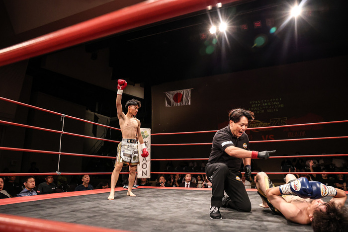 そして、とどめは左ハイ。1R1分43秒、見事なTKO勝ちで第5代-51.5㎏王者となった。新王者となった松本は「このベルトを獲って終わりじゃない。次のステップに向かって、もっとトレーニングして強くなる」と決意も新たにしていた。