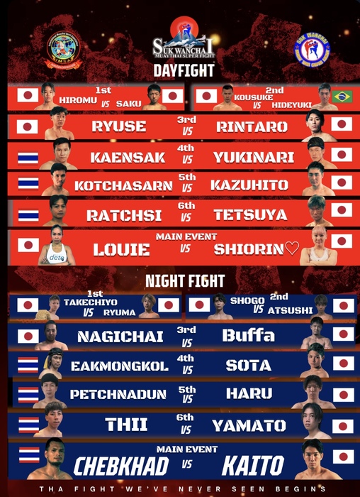 「DAY FIGHT」と「NIGHT FIGHT」は共に7試合ずつ、タイ人選手も多数参戦する。
