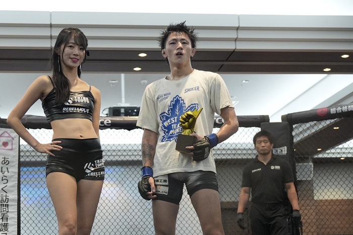 TRIBE練習中の萩原京平から推薦のスモーカージムの宮川日向は、永留惇平に判定負け後、6月のGLADIATORでルキヤと対戦。倒し・倒されの壮絶な打ち合いの末に、2R TKO負けを喫している