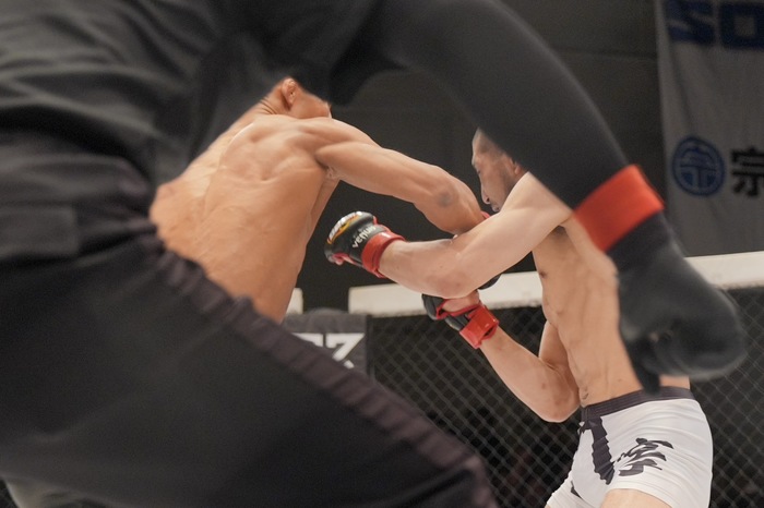 ヒットし動きが止まった木下に前手の右フックで飛び込むと顎に入って木下がダウン! しがみついて凌ごうとする木下を引き剥がし鉄槌連打! 意識が飛びKO!