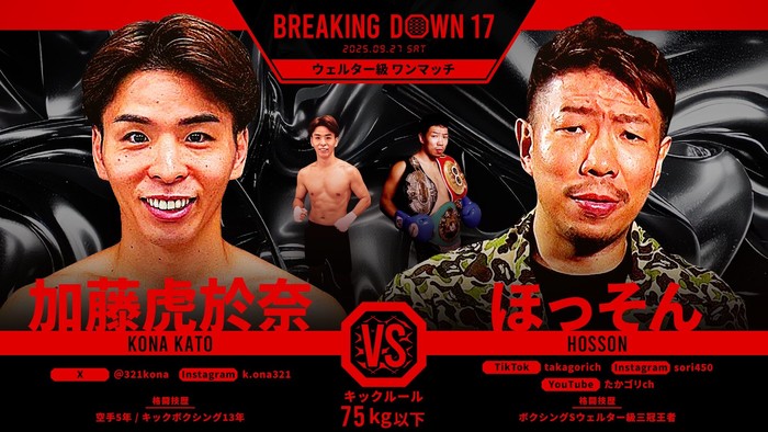 2025年9月27日(土)東京・立川立飛アリーナ『BreakingDown 17』の対戦カードが発表された。