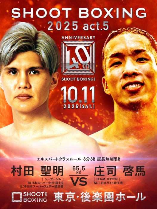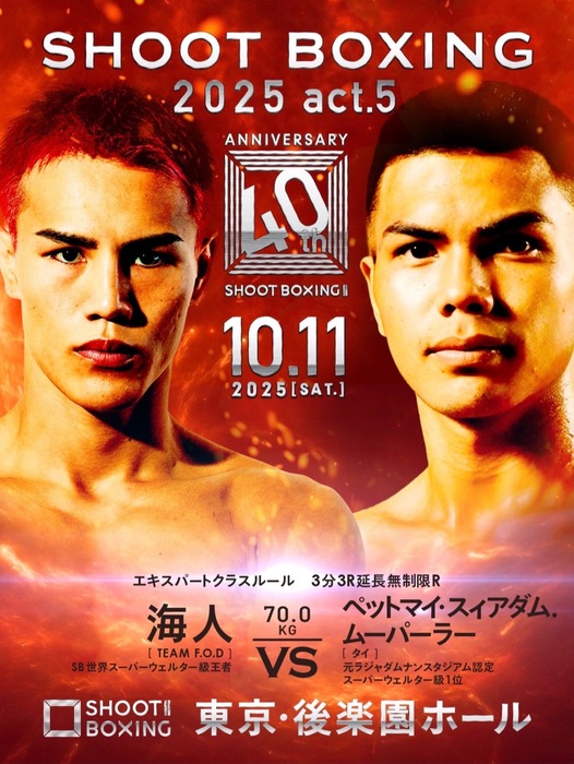 2025年10月11日(土)東京・後楽園ホール『SHOOT BOXING 2025 act.5』にSB世界スーパーウェルター級王者・海人(TEAM F.O.D)の出場が発表された。