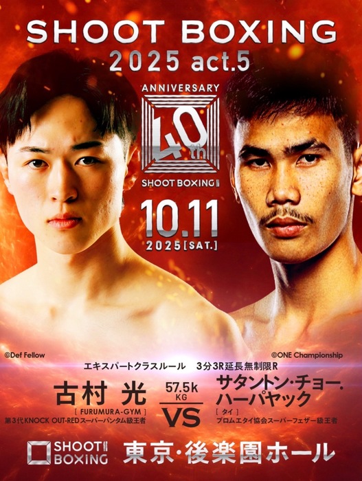 対戦相手はプロムエタイ協会スーパーフェザー級王者のサタントン・チョー.ハーパヤック(タイ)。過去にラジャダムナンスタジアムでもベルトを巻き、ONE Friday Fightsでも2戦2勝の実績を持ち、現地タイでも関係者から高い評価を得ているムエタイ戦士。古村と同じくS-cup出場を狙って今大会でSB初参戦を果たす。
