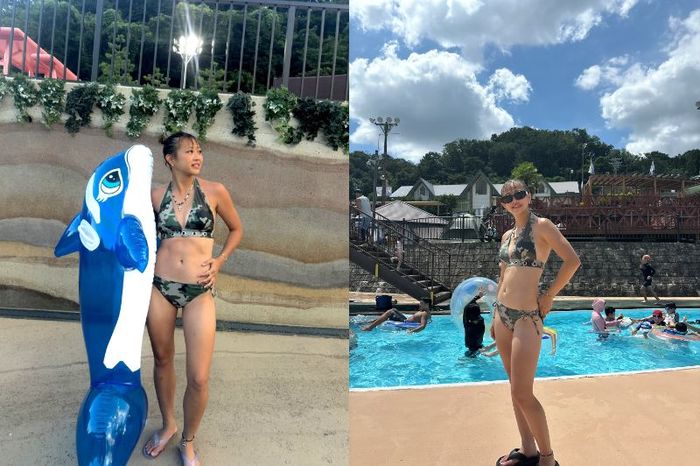 19日、自身のSNSに「夏終わっちゃう。またプール行きたい。夏休みに家族でプール行った時の写真。めっっっちゃ楽しかったなー」と泣き顔の絵文字と共に2枚のビキニ姿を投稿。