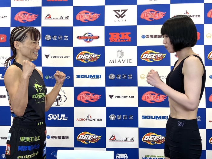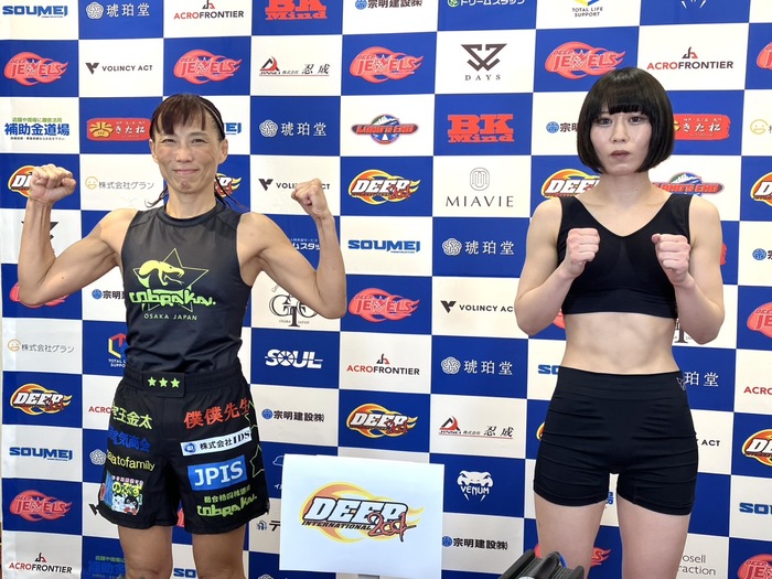 サダエ「試合がこれで出来る死角をいただけてとてもうれしいです。その前に大阪の各ジムの私の出稽古を受け入れてくださった、大阪、関西、神戸、京都のジムの皆さんに感謝します。あと一緒に練習してくれた女子の仲間の選手にも感謝します。その皆さんのおかげでここに立つことが出来ています。その力を全て出し切りたいと思います」