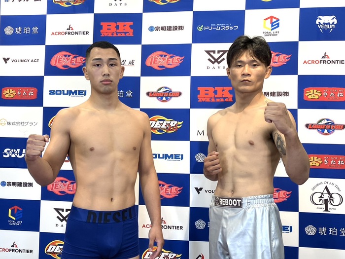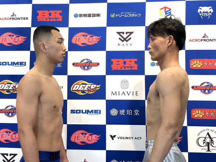 ポストするYoutube 12345678910 ▼第5試合 DEEPウェルター級 5分2R虎鉄(パンクラス大阪稲垣組)=76.55kg浅野功暉(REBOOT)=77.15kg 虎鉄「移籍一発目、しっかりフィニッシュか一本で決めます」 浅野「明日、しっかり勝って盛り上がるような試合をしたいと思います」 NEXT次のページへ12345678910 ポストするYoutube