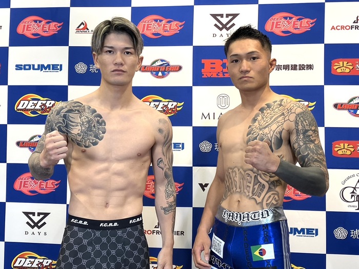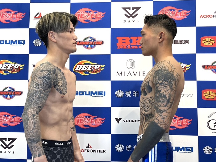 【DEEP】ウェルター級王者・角野晃平 「今後の格闘技人生において大事な試合」、挑戦者・嶋田伊吹「何が何でも勝ちます」=全選手が計量パス
