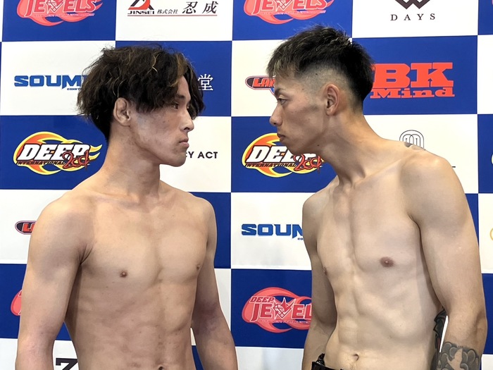 【DEEP】ウェルター級王者・角野晃平 「今後の格闘技人生において大事な試合」、挑戦者・嶋田伊吹「何が何でも勝ちます」=全選手が計量パス