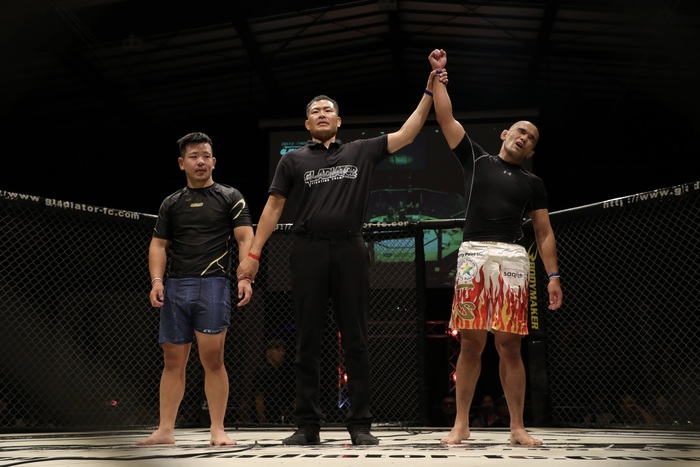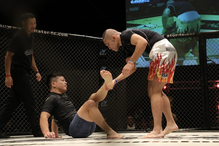 【GLADIATOR】ダウン奪われた中川晧貴がイ・フィジェをギロチンチョークに極める、ライト級ヅッキーニョスが荒井銀二との接戦制す、OFGキックで荒尾祐太がハンセン玲雄に完封勝ち、フライ級・岩崎圭吾がパク・ファランにスプリット判定勝ち、フェザー級・國頭武が石田拓穂に2R TKO勝ち
