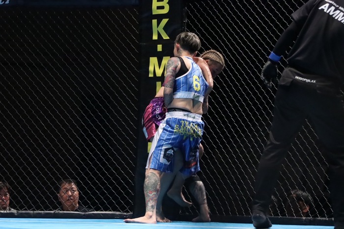 2025年4月6日に1年1カ月ぶりの復帰戦を地元・大阪で戦い、鈴木”BOSS”遥のレスリングに組みでも激闘。打ち勝ち判定勝ち。しかし、25年5月に奥富夕夏の相撲とMMAが融合した動きに左を封じ込まれ判定負け。MMA戦績を8勝6敗1分としている。