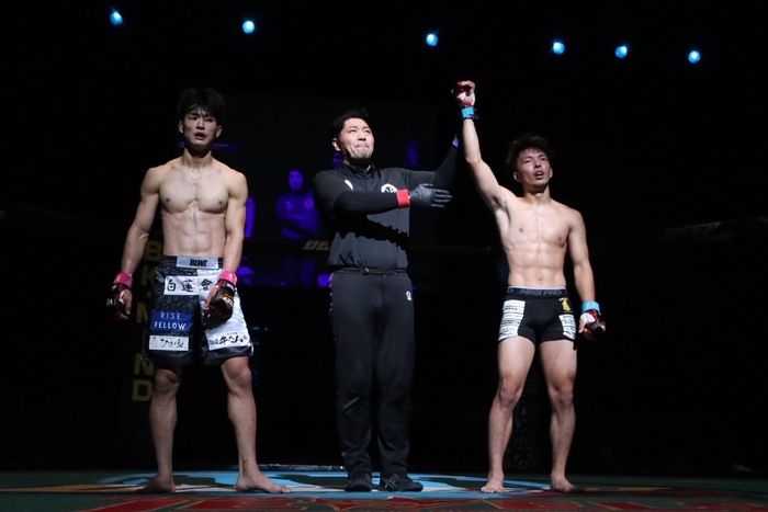 サイドについた矢野はパウンド、山崎が立ち上がってもすぐに弾丸のようなシングルレッグでテイクダウンを奪う。矢野は立ち上がったパウンドを見舞い、山崎が蹴り上げを繰り出すと矢野はその蹴り足をつかんでのフットロック。足を抜いた山崎が立ち上がってパウンドを狙うも試合終了。