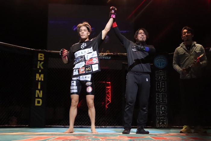 古市がジャブと右ロー、砂田は圧をかけながらじりじりと近寄る。古市はいいタイミングで右カーフを蹴り、ジャブを突く。砂田は距離が合っていないか空振りが続く。古市が入ってきたところに右ストレートを合わせる砂田。この一発にグラついた古市に砂田が前に出てのワンツー、ケージへ吹っ飛んだ古市に右の連打を浴びせ、砂田がKO勝ち。3戦連続フィニッシュを決めた。
