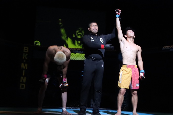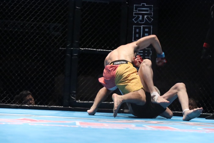 時任はサイドからマウント。パウンドを打ちながら、立ち上がろうとした大空斗のバックを奪いバックマウント。4の字ロックに組んでパンチを見舞っていく。立ち上がる大空斗を再びテイクダウンし、時任がパウンドを打って試合終了。