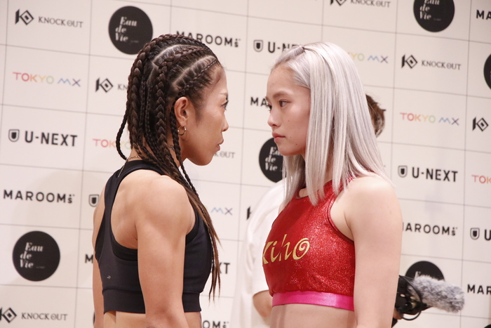 対する山田は「私も計量の時に向かい合った時に、Kiho選手が凄くいい目をしていたので凄く試合が楽しみです」と、Kihoの目を見て同じく試合が楽しみになったと話した。