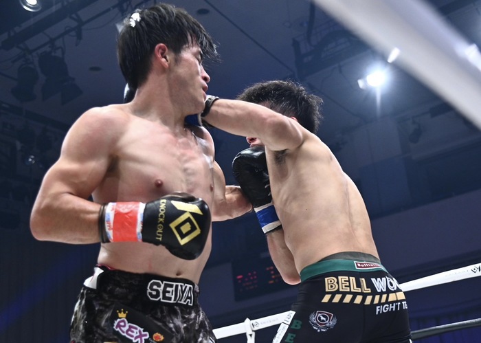 3Rも古木が圧をかけて左右ボディと左右フック、内藤も負けじと左ミドルを蹴る。内藤の左右フックが古木を捉えた直後、古木の左右ボディがめり込み内藤がペースダウン。前に出る古木がワンツー、左右フック、内藤も右ストレートと左右フックで打ち合う。すると古木は左右のヒザ。内藤の左フックに古木は左テンカオ。前に出る古木に内藤が右フックをヒットさせる。古木のワンツーをダッキングでかわす内藤。最後は左右フックを打ち合い、試合終了。