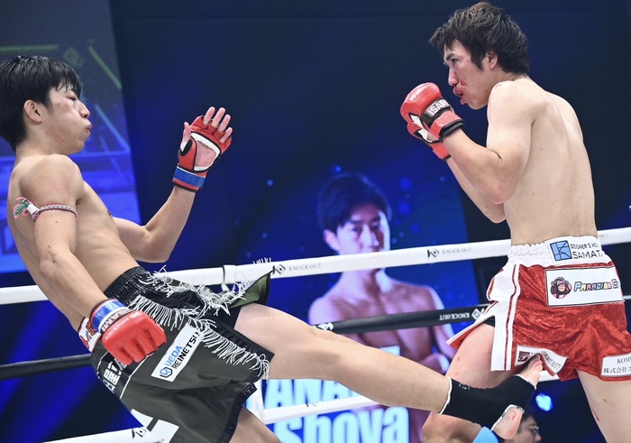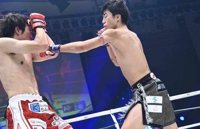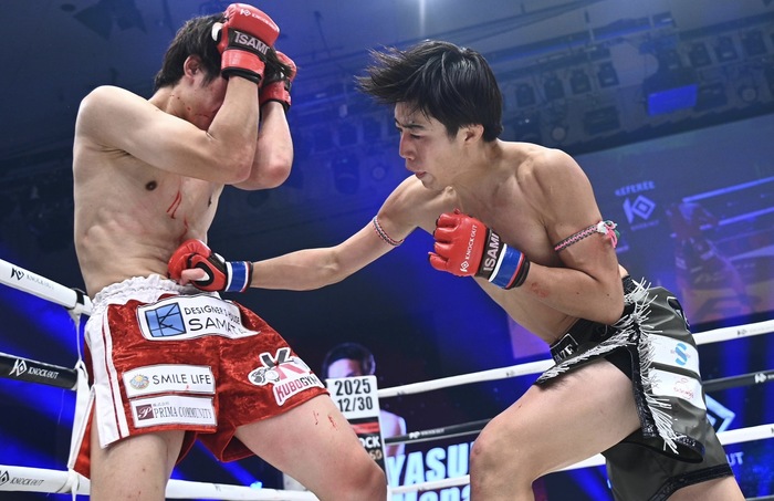 1R、渡辺は軽い打撃で距離を測り、右ローを蹴っていく。安田は右ストレート、ワンツー。中盤を過ぎると安田の右ストレートが当たり始め、渡辺はジャブを突く。ジャブを連続して当てた渡辺がストレートの連打で前へ出て、右フックでダウンを奪う。さらにヒジ、左右フックで安田をロープに釘付けにする渡辺。