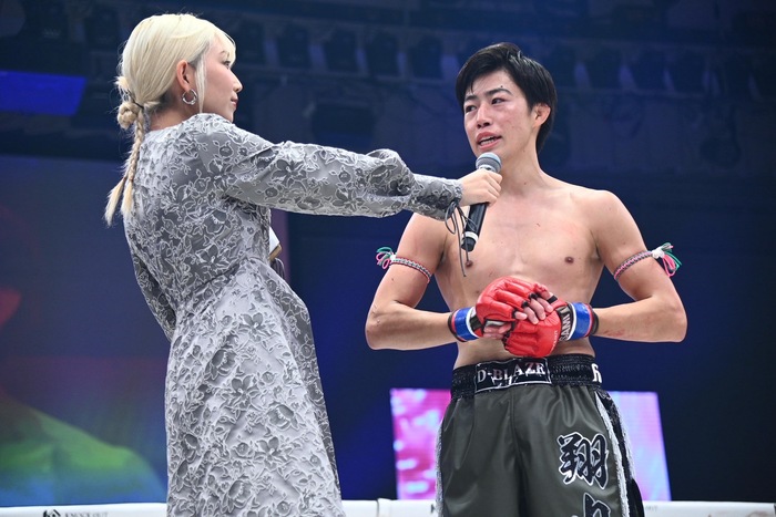 渡辺は「KNOCK OUT初めてなですけれど、会長、トレーナー、友だち、家族に感謝したいです。今後KNOCK OUTライト級荒らせるように精進していきますのでよろしくお願いします」と勝利者インタビューに答えた。