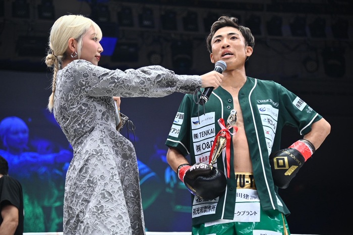 YOSHIHIROは「応援してもらってその方たちのためにこの舞台で絶対に倒そうと決めていたので、その皆さんに(喜びを)伝えたいです。これから活躍していくので覚えておいてください」と勝利者インタビューに答えた。
