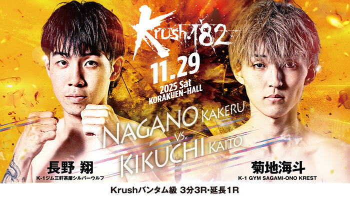 Krushバンタム級3分3R延長1Rの長野翔(K-1ジム三軒茶屋シルバーウルフ)vs.菊地海斗(K-1 GYM SAGAMI-ONO KREST)、Krushライト級3分3R延長1Rの友尊(TEAM K/BLUE DOG GYM)vs.堀井翼(K-1ジム五反田チームキングス)など、合計7カードが発表された。
