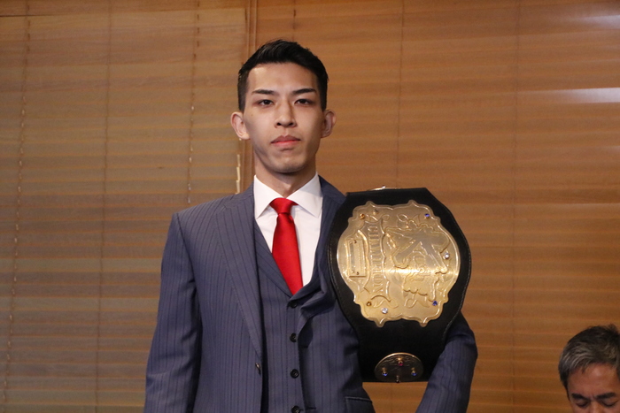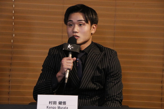 無敗のまま9戦目で王座挑戦が決まった村田は「8戦8勝でここまで来て、9戦目でタイトルマッチ。今までやった中で一番強い選手なので自分を一番強い状態にして挑もうと思います」と挨拶。