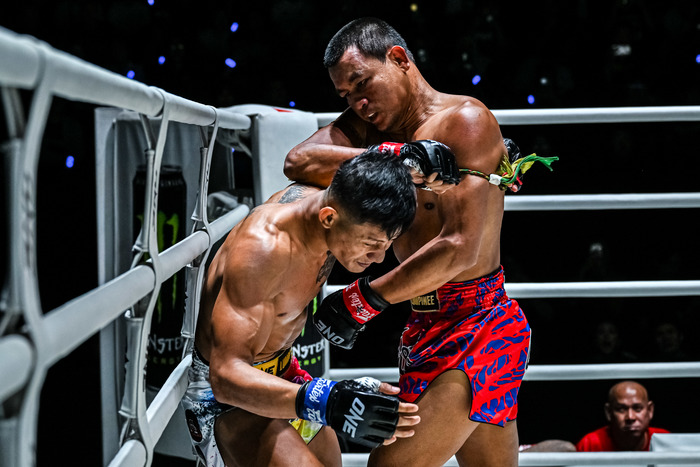 1R、静かな立ち上がりからサウスポーのスーブラックが後ろ廻し蹴りを繰り出すと、セクサンも負けじとバックスピンエルボーを放つ。セクサンの右フックをかわしたスーブラックは左ストレート。スーブラックの左縦ヒジ、左ストレートを被弾するセクサンだが、前へ出て右ボディストレートを打つ。右手を前に出して距離を測るスーブラックは左ヒジ、組むとセクサンを裏投げのように投げる。そしてラウンド終了間際、左フックでダウンを奪った。