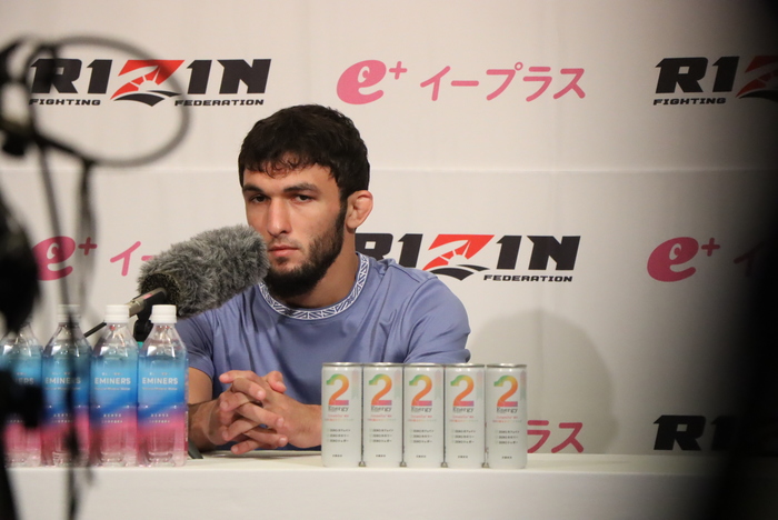 第12試合の「RIZIN WORLD GP 2025 フライ級(57.0kg)トーナメント」準決勝5分3Rで扇久保博正(THE BLACKBELT JAPAN)と対戦する、アリベク・ガジャマトフ(ダゲスタン)が試合前の意気込みを語った。