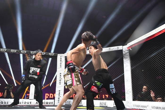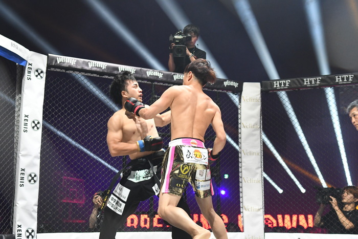 判定は5-0で井原のフックの出し際に左フックを合わせた大野が勝利。タイトルを奪取した。井原はグローブを外し、すぐにケージを降りていった。