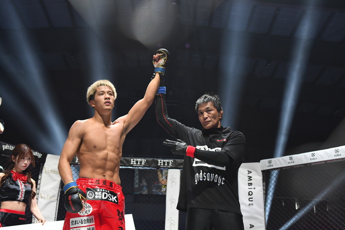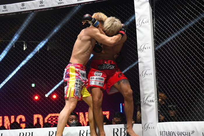 2Rも突進する太陽をかわした賢民がダブルレッグでテイクダウンに行くが、太陽は逆にテイクダウン狙い。賢民は首相撲になってヒザ蹴りを連打、これに身体を丸める太陽へ左右フックの連打、さらにヒザ蹴り、下を向いたままの太陽へアッパーを連打し、ここでレフェリーがストップした。