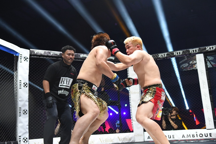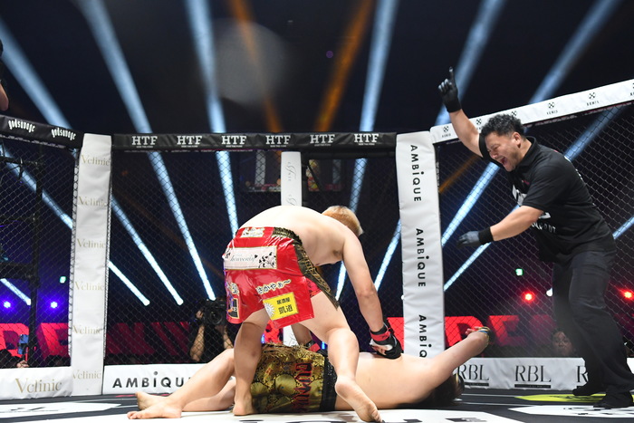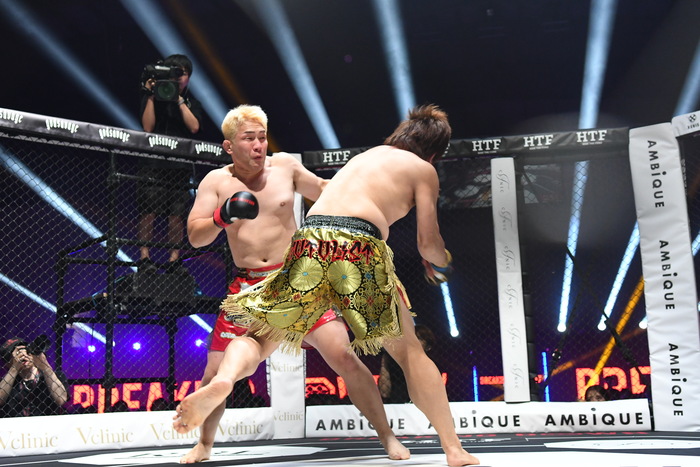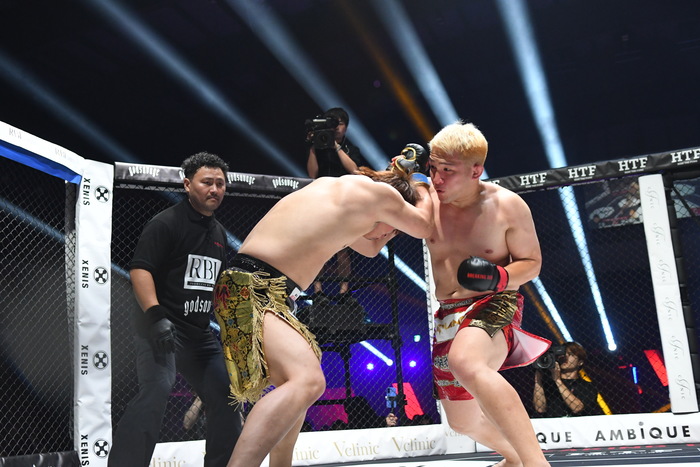 「てるくん、今日はてるくんが相手だからこそやるかやられるかの殴り合いが出来ました。てるくんも次からはレッドパンティーズとしてBreakingDownを盛り上げていきましょう。今日で19戦目です。次のさいたま、楽しみにしていてください」