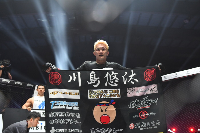 開始と同時にてるが右ハイも転倒。足を止めて左右フックで殴り合う両者。てるが最初は押したが川島がすぐに押し返し、その後も川島が優勢。再び前に出ようとするてるだったが、川島の左右フックの方が回転が速く、最後は右フックを大振りしたところに川島の右ストレートを打ち抜かれ、川島のKO勝ちとなった。てるは自力では立ち上がれないh所度のダメージを負った。