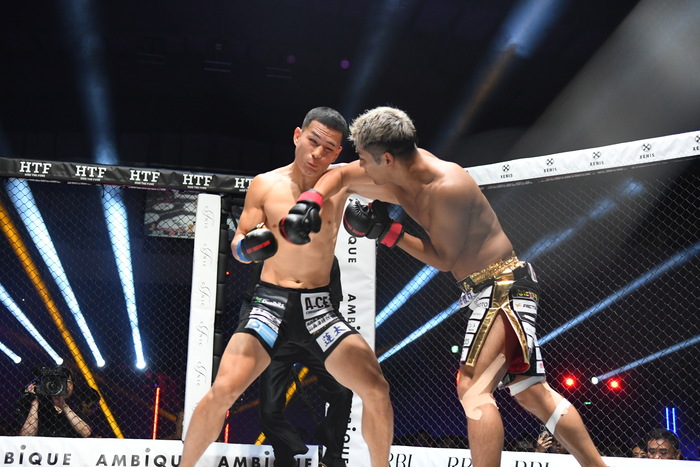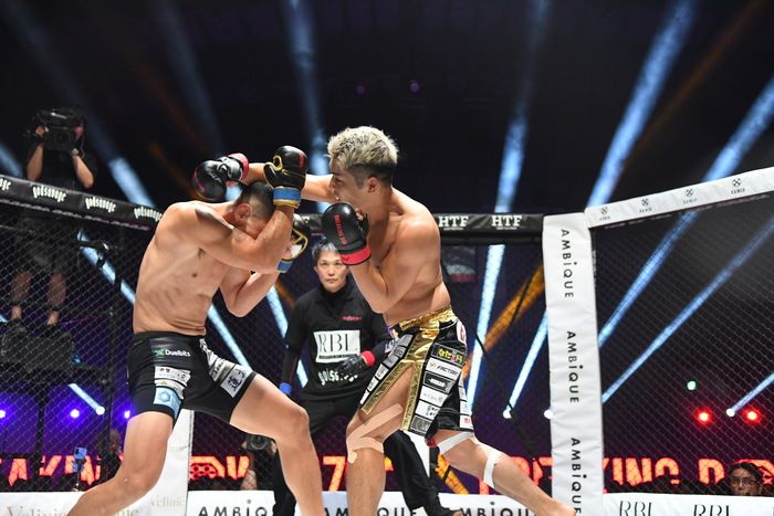 「どんなもんじゃい、この野郎。信原、最後強いじゃないかこの野郎。最高の試合だった。過去イチ最高の試合だった。最後にタイトルマッチやるダンチメンこの野郎、俺があばら折れてると知っててここばかり蹴りやがってこの野郎。どっちが勝ってもてめえとの勝負は終わってねえからな、再戦だ。分かったかこの野郎」